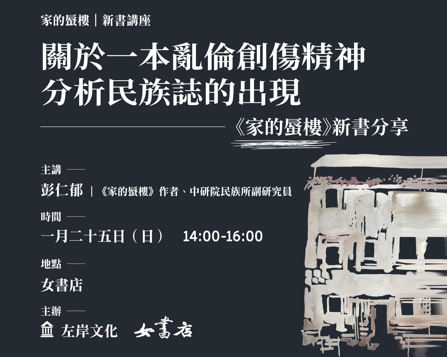 1/25 Sun.【關於一本亂倫創傷精神分析民族誌的出現——《家的蜃樓》新書分享】