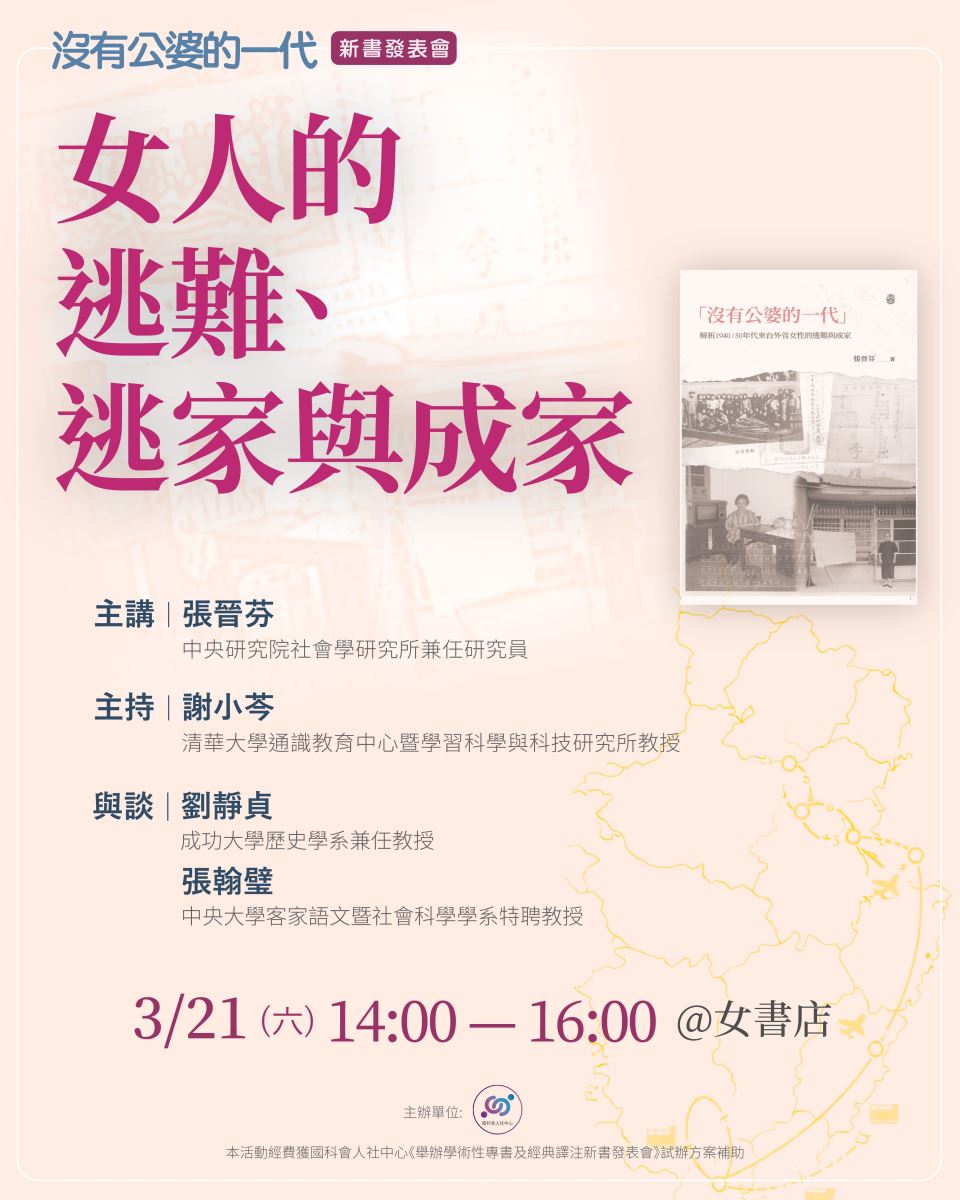 3/21 Sat.【女人的逃難、逃家與成家】《沒有公婆的一代》新書發表會